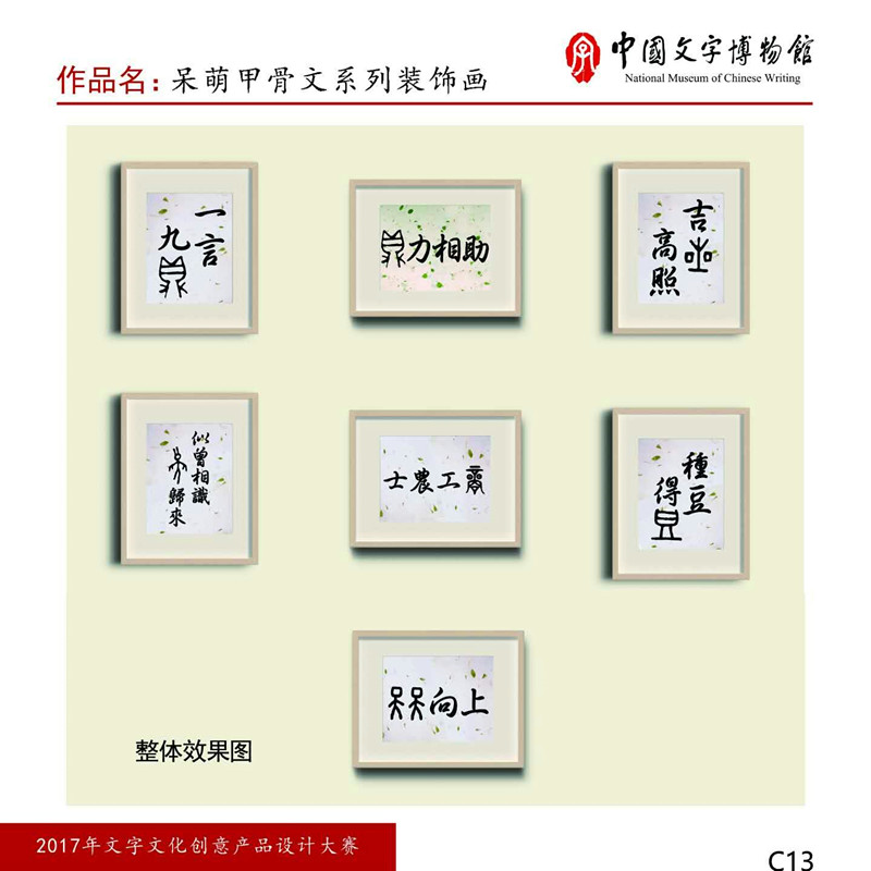 获奖的作品分别是由袁瑞敏、单晓彤、陈绮敏设计作品“笔墨横姿餐具” “呆萌甲骨文系列装饰画”“萌哒哒甲骨文线圈镂空笔记本”,由何彦琦、陈雅娴、庄依琳设计的作品“手丸土(垫)”。