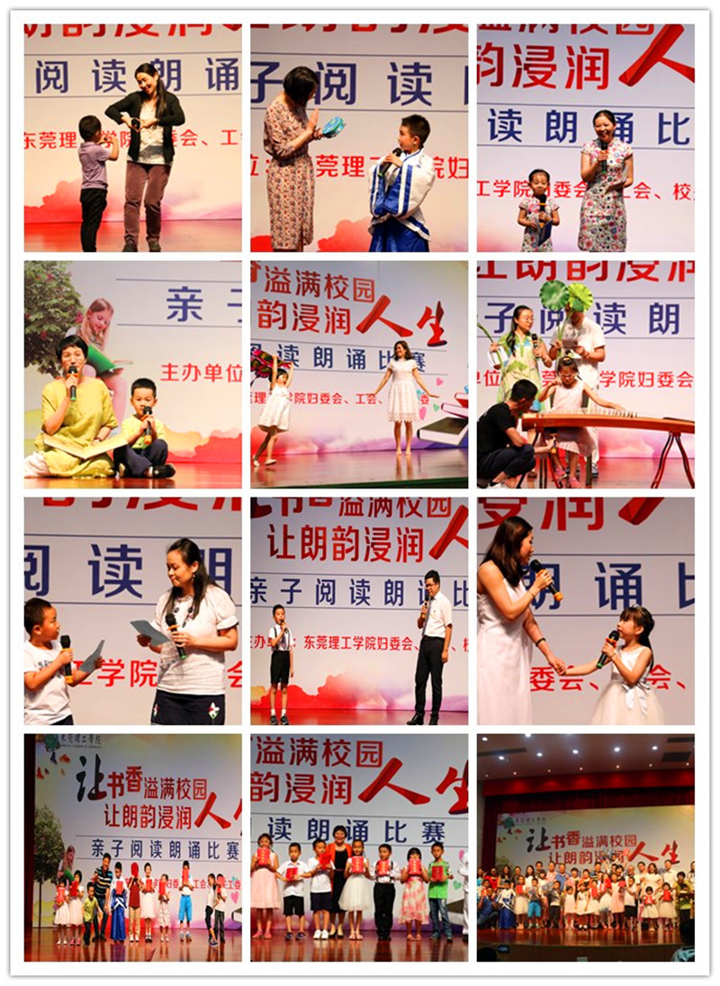 5月27日晚,20个莞工教职工家庭,齐聚学术会议中心报告厅,用充满温情的朗诵,共同迎接“六一”儿童节的到来。活动由校工会、妇委会、校关工委共同主办,主题为“让书香溢满校园,让朗韵浸润人生”。校关工委常务副主任黄碧莲,校工会专职副主席吕卫东,校妇委会主任刘英华等领导出席了本次活动。200多名师生、小朋友现场为参赛选手打气助威。