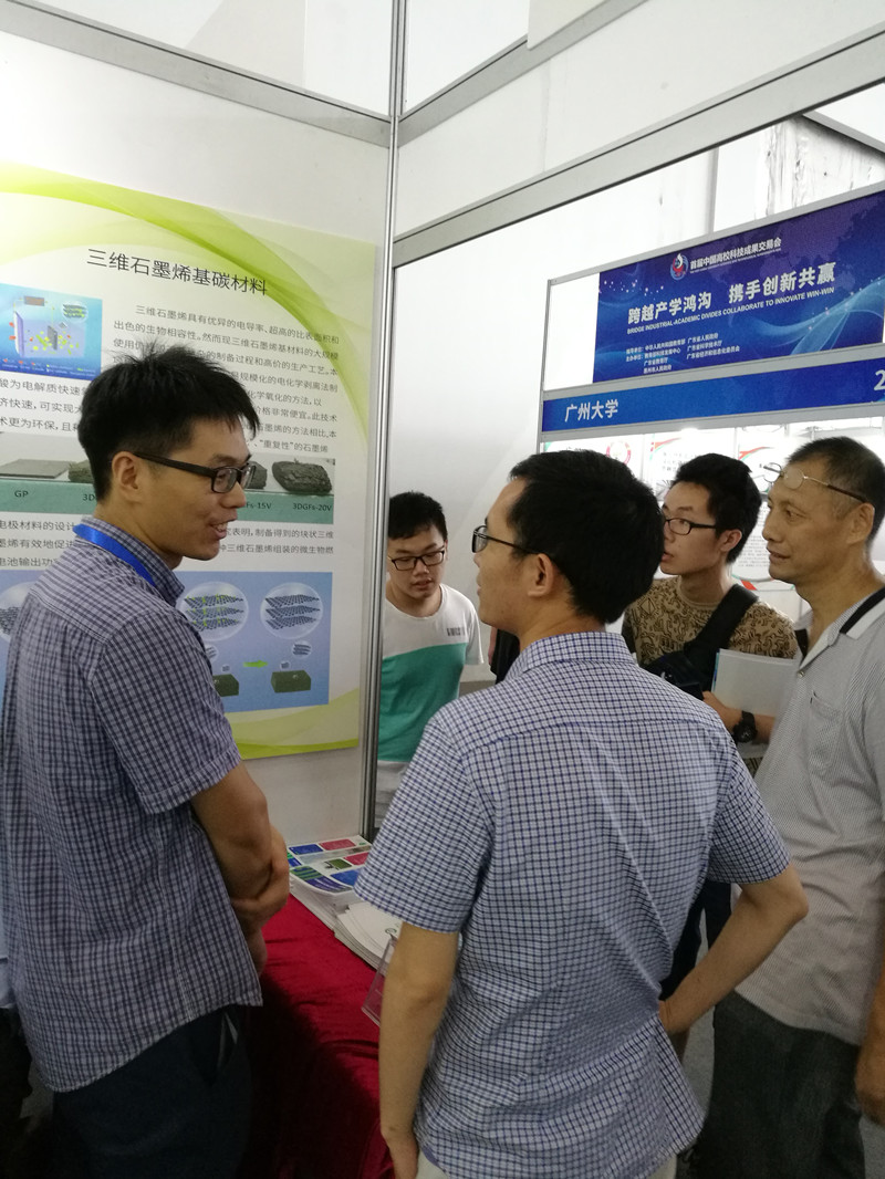 本届科交会,我校以标准展位和分领域展位两种形式参加了项目成果展。其中标准展位重点展示了生态环境与建筑工程学院的电催化氧化技术、广东省新型纳米材料研究与应用工程技术研究中心的三维石墨烯基碳材料、科技资源大数据研究与成果转化中心的科学家在线、生态环境与建筑工程学院的基于深共融溶剂的燃油脱硫技术等项目。分领域展位分别在智能装备、大数据与通讯、新材料、节能与新能源、人工智能等6大领域,重点展出了化学工程与能源技术学院的新型动态节能的信息展示装置、生态环境与建筑工程学院的“绿色”高韧性桥面伸缩连接板、计算机与网络安全学院的基于树莓派和工业物联网的标签识别管理系统与升级方案等成果。