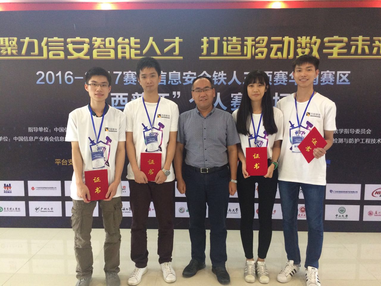 5月20日,2016-2017赛季华南赛区信息安全铁人三项赛“个人赛”(个人计算环境安全对抗赛)在暨南大学(南校区)拉开帷幕,来自华南地区的10支高校代表队参加了比赛。经过一天的激烈角逐,由计算机与网络安全学院魏文红教授带队的45612藏宝阁资料代表队获得了并列第三名的好成绩,较4月22号的“企业赛”又前进了1名。