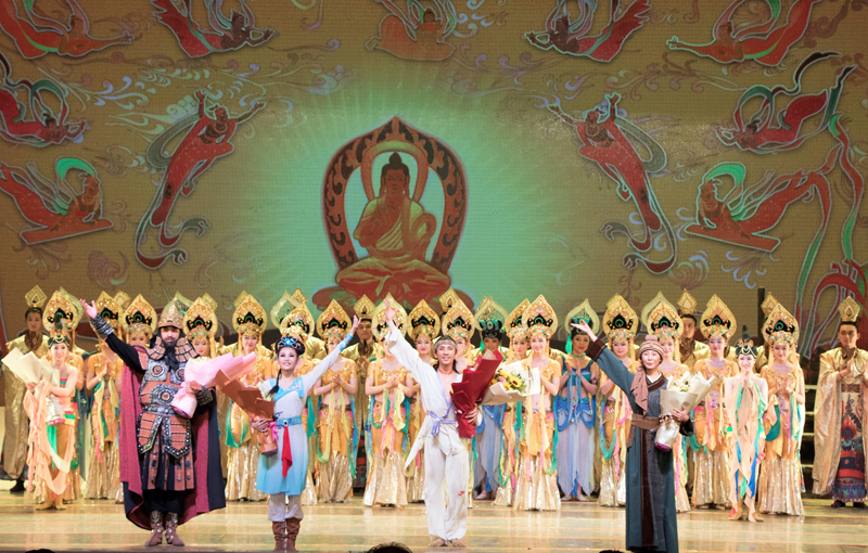 《大梦敦煌》是一部富于传奇色彩的大型民族舞剧,以敦煌艺术宝库的千百年创造历史为背景,以青年画师莫高与大将军之女月牙的感情历程为线索,演绎了一段可歌可泣的爱情故事,有 “中国版罗密欧与朱丽叶”之称。