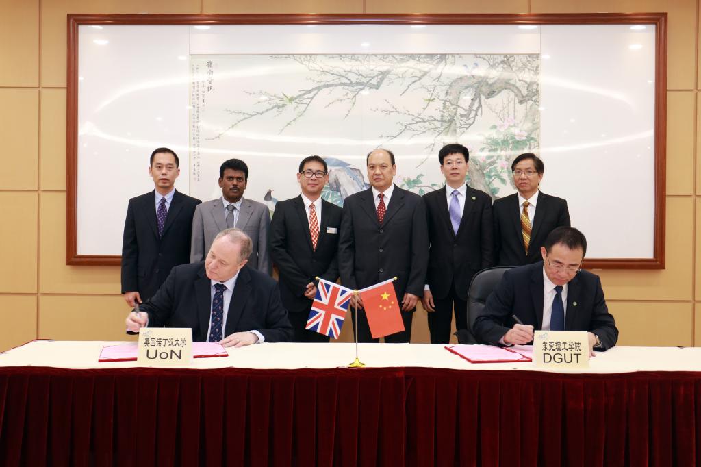 2月27日,东莞市与英国诺丁汉大学签约仪式在市行政办事中心举行。签约仪式上,东莞市政府与诺丁汉大学签订了研究生联合培养合作意向书,我校与诺丁汉大学签订了“联合培养博士计划”。