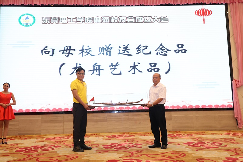 吕琦元为新当选的曾柏强会长颁发了证书。曾柏强代表麻涌校友感谢母校的栽培,表示麻涌校友会将在学校校友会的指导下,团结和带领麻涌的校友,不忘初心,砥砺前行,勤奋工作,为当地的社会和经济的发展作出应有的贡献。曾柏强还代表麻涌校友会向母校赠送了纪念品。