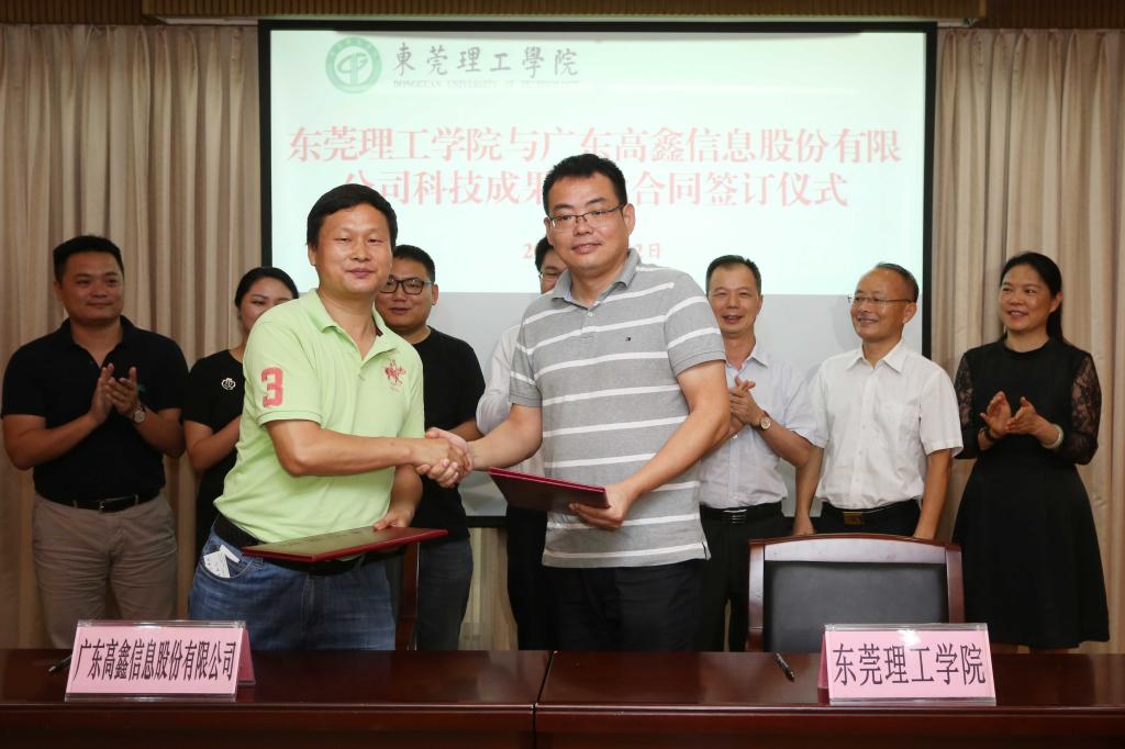 副校长李忠红,专利权受让方、广东高鑫信息股份有限公司总经理孙明科,科研处处长程发良等参加了签约仪式。