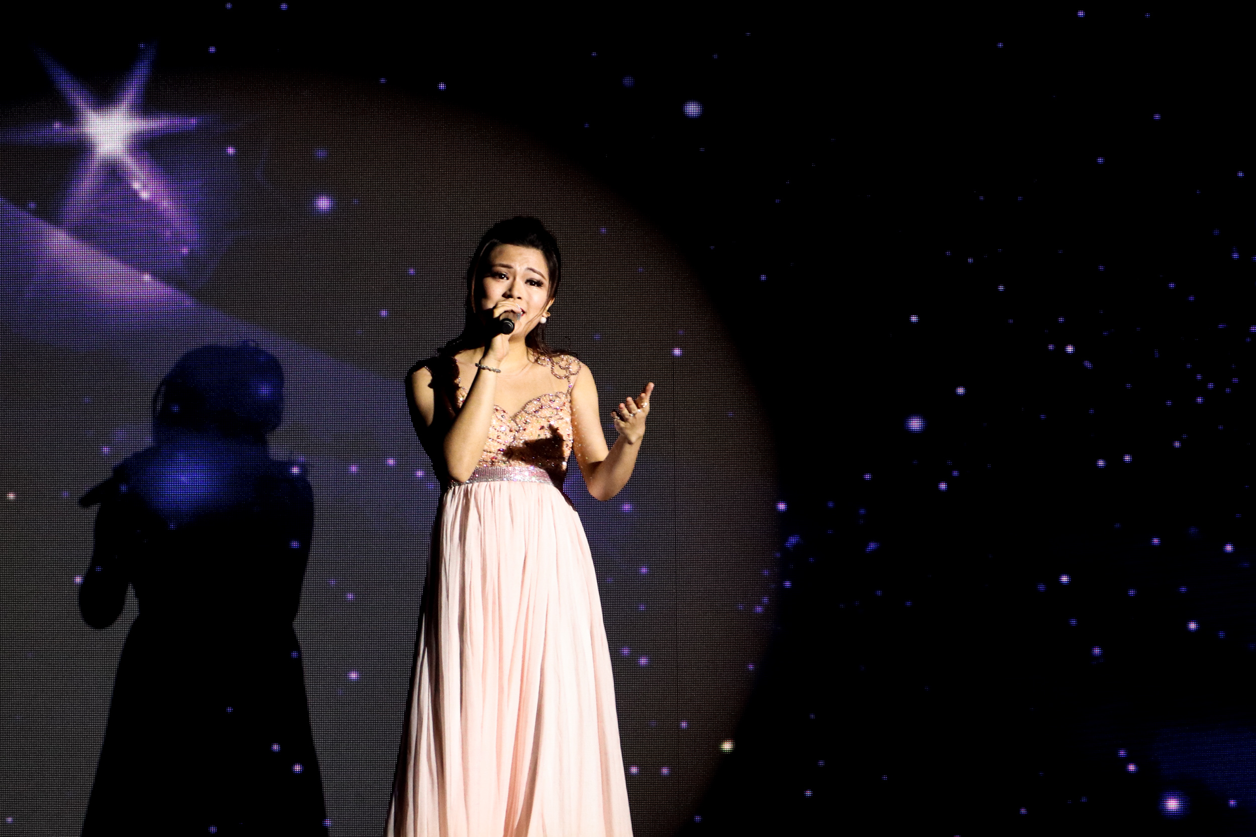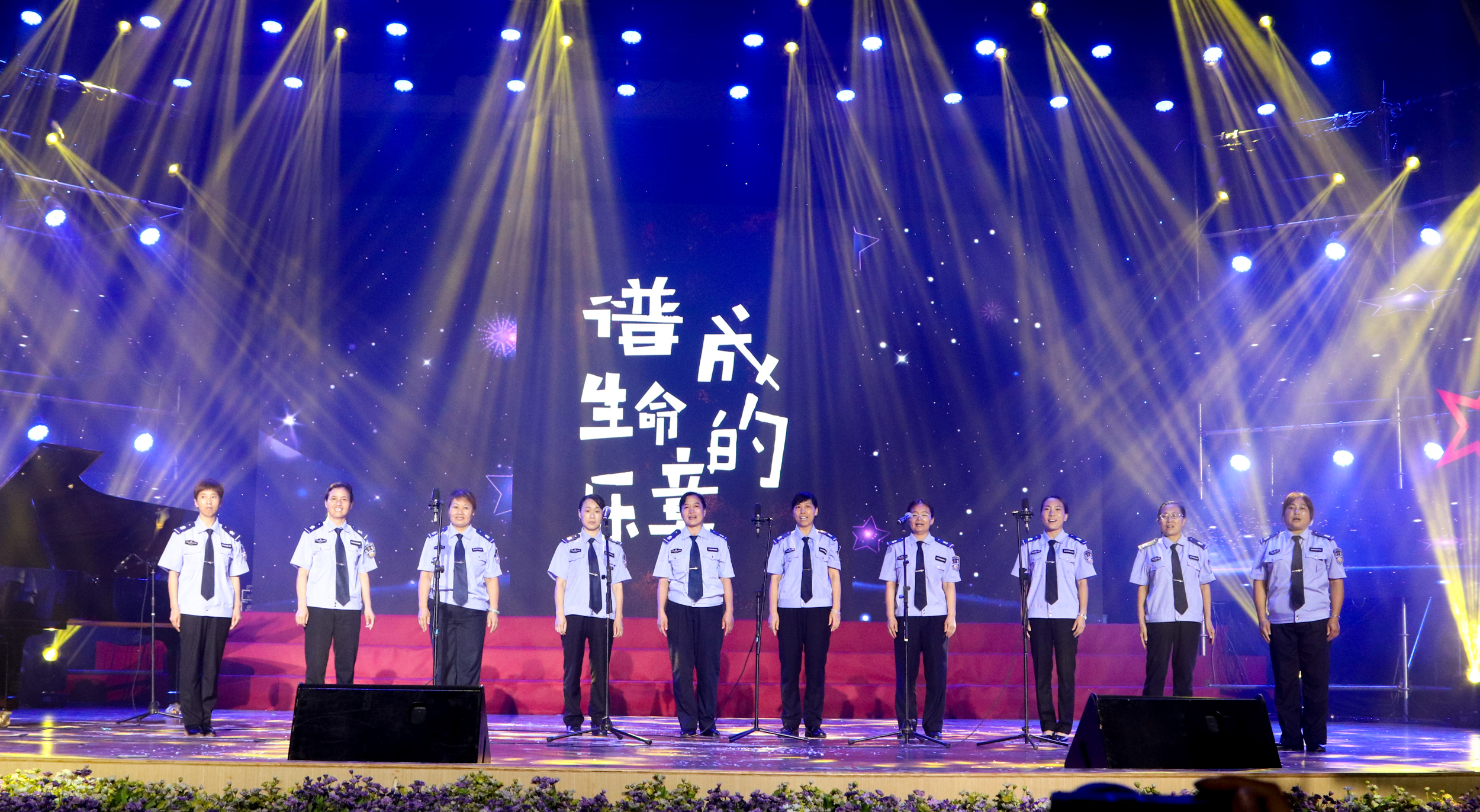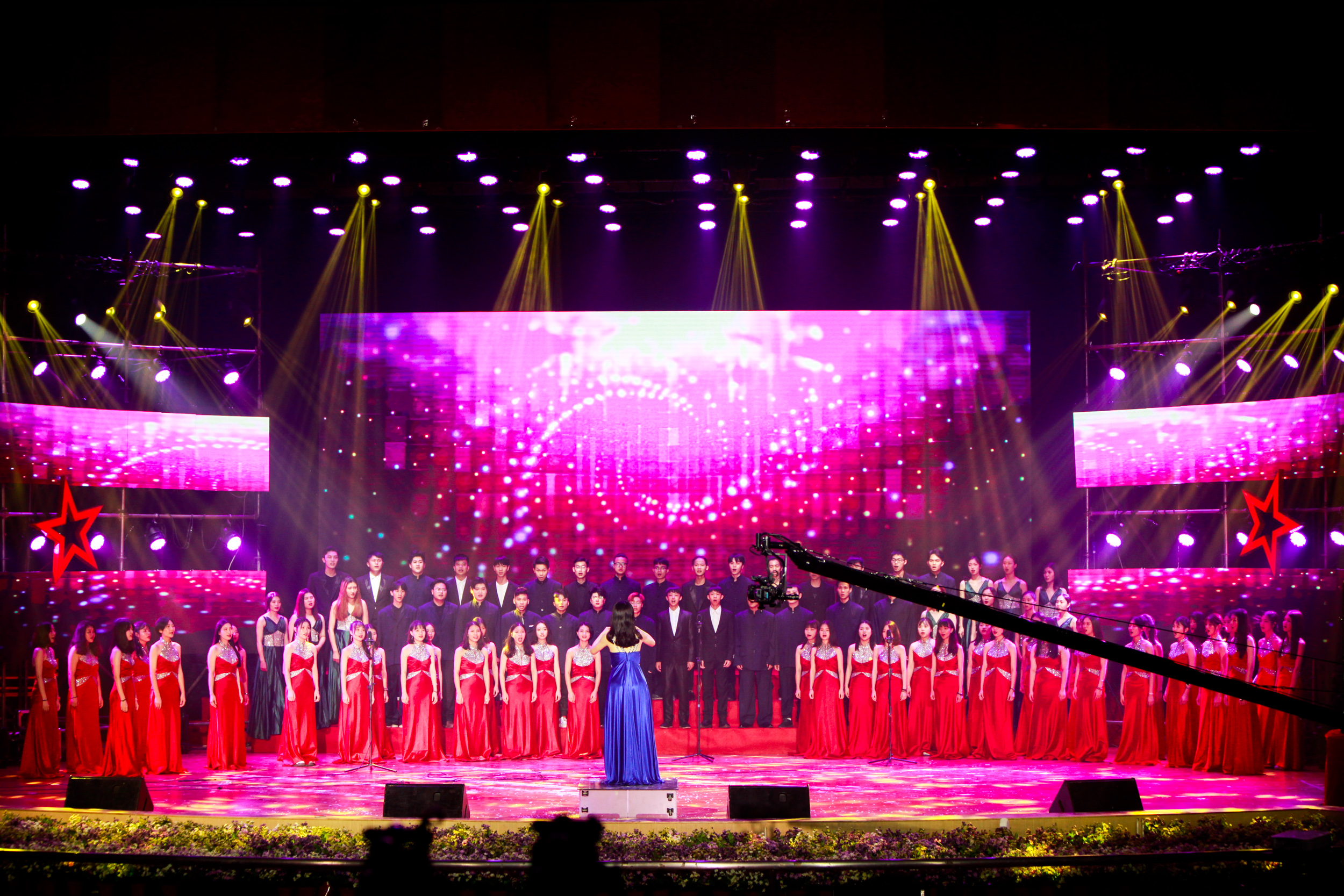 晚会下篇精彩纷呈,刚获得“东莞声音”大赛银奖的王和卿老师以一首«You Raise Me Up»唱出了毕业生的心情,群舞《你好,再见》以现代芭蕾的形式演绎了毕业生四年莞工生活的喜与悲。社区服务中心的保安阿姨代表为毕业生们带来一曲«明天会更好»,赢得了现场最热烈的喝彩与掌声。现场还播放了后勤人员对毕业生们的祝福视频。伴着教育学院带来的《鸿雁》和《拉德斯基进行曲》两首无伴奏合唱歌曲,晚会缓缓谢幕,“情系莞工”之情越发浓烈。