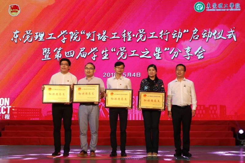 李亚鹏向“红旗团总支”获奖单位颁奖