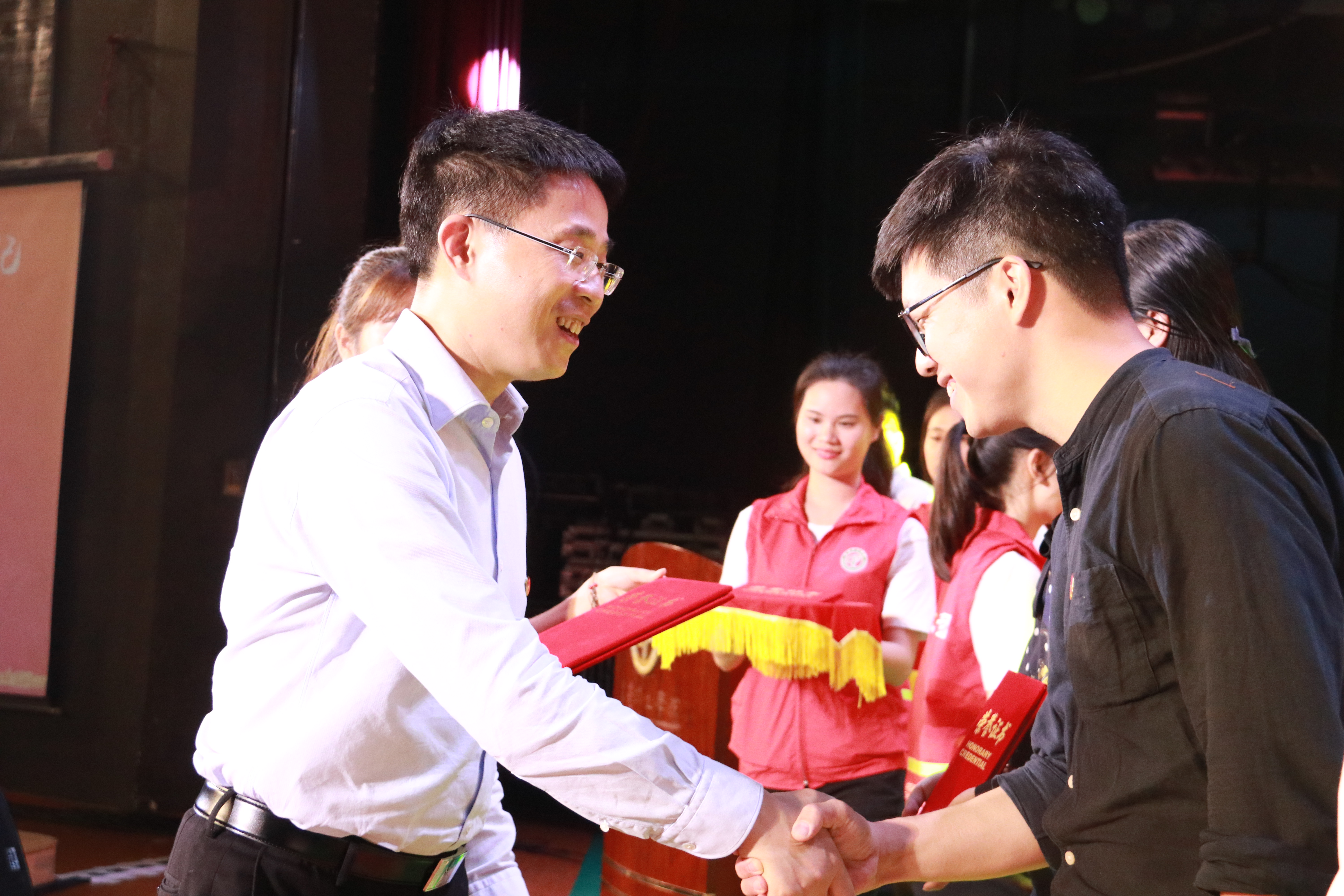 吕琦元向“红旗学生会”获奖单位颁奖