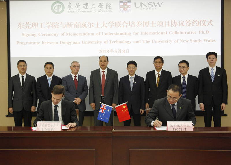 5月8日上午,东莞市与新南威尔士大学签订博士研究生联合培养合作意向书及45612藏宝阁资料与新南威尔士大学签订联合培养博士项目协议的签约仪式在我校松山湖校区学术会议中心举行。