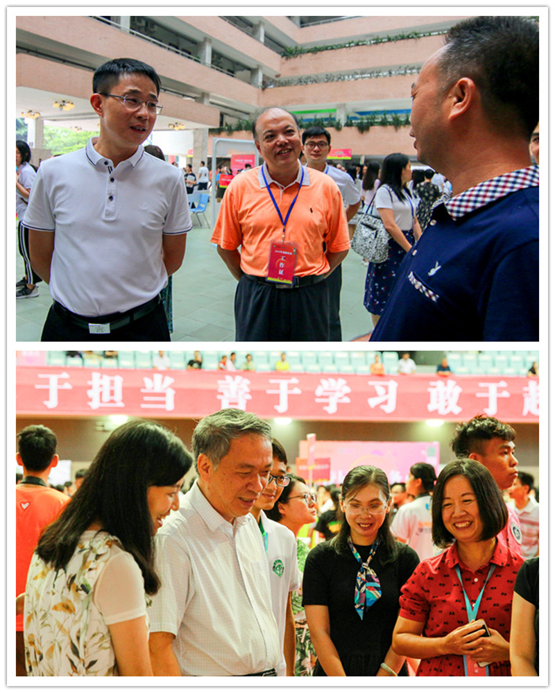 学校领导成洪波、李琳、吕琦元、李忠红、杨敏林到迎新现场了解新生报到情况,慰问迎新一线人员,并与学生及其家长亲切交谈。