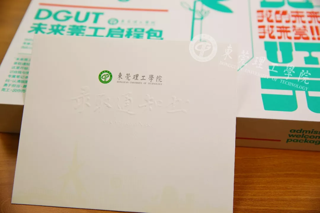 这一份2018级新同学的专属礼物内容比上一年更丰富,内附录取通知书、帆布袋、笔袋、莞工T恤、莞工笔记本、“未来瓶”、报到手册、地图册、莞工元素贴纸、行李贴纸、车辆出入证等超多豪华单品。