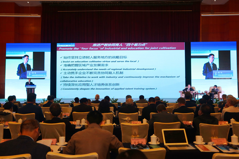 我校党委书记成洪波应邀出席研讨会,并在首日上午主报告阶段作题为《推进产教协同育人服务制造业创新发展》的报告。成洪波以我校近年来实践探索为例,阐述了地方高校产教协同育人的着力点和关键举措,强调要始终坚持立德树人服务地方的战略追求,准确把握区域产业发展需求,主动携手产业不断完善协同育人机制,持续深化应用型人才培养体系创新,在加强战略谋划与价值引领、完善需求导向机制、建设新型学科专业集群、打造“双师双能型”师资队伍、深化协同育人组织创新与模式改革、培育“知行合一”办学育人文化等方面抓好落实,努力实现教育链、人才链和产业链、创新链融合,有效支撑引领制造业创新发展。