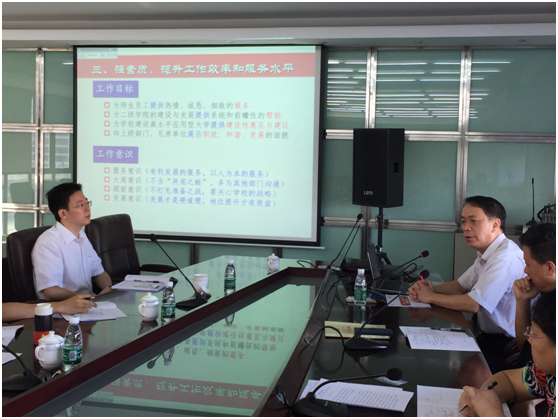 李琳勉励机关工作人员要“强素质,提升工作效率和服务水平”,为师生员工提供热情、诚恳、细致的服务,为二级学院的建设与发展提供系统和前瞻性的帮助,为学校建设高水平应用型大学提出建设性意见与建议,向上级部门、兄弟单位展示积极、和谐、发展的面貌。机关工作人员要注重强化以人为本的服务意识、不当“井底之娃”的大局意识、不打无准备之战的超前意识以及发展意识。他指出,具体做到三点:一是提高业务能力,把正确执行落实作为底线要求。立足本职岗位,熟悉规章制度和办事流程,按时、保质完成领导交办的任务。二是加强沟通协调,把提高效率作为自觉要求。多换位思考,多观察比较,完善制度,明确职责,优化流程,不断提高工作效率和服务水平。三是提高参谋水平,让主动作为成为一种风尚。除了知悉红线、高压线外,要了解其他相关领域的政策特性,在融合中寻找突破,掌握规避的方法,不断提高参谋水平,推动重点、难点问题的解决。