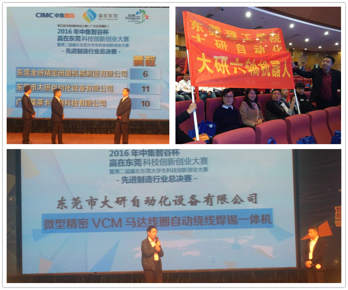 11月11日晚,第五届中国创新创业大赛(广东•东莞赛区)2016赢在东莞科技创新创业大赛第二场先进制造行业决赛在东莞市常平大剧院落幕。入围先进制造行业决赛的3家团队、6家企业同台比拼,展开激烈角逐,其中由我校资产经营有限公司余运洋博士担任创业导师的东莞市大研自动化设备有限公司问鼎本场决赛企业组冠军。