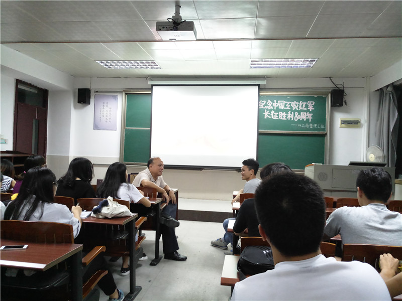 10月26日晚,经济与管理学院2014级工商管理专业1班在莞城校区开展“纪念中国工农红军长征胜利80周年”主题班会。