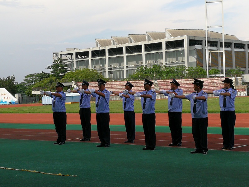 在岗位技能竞赛环节,校卫队员进行了队列训练、交通指挥手势、交接班仪式展示,汇报了平时的训练成果,展示了良好的精神状态、作风纪律和业务能力。