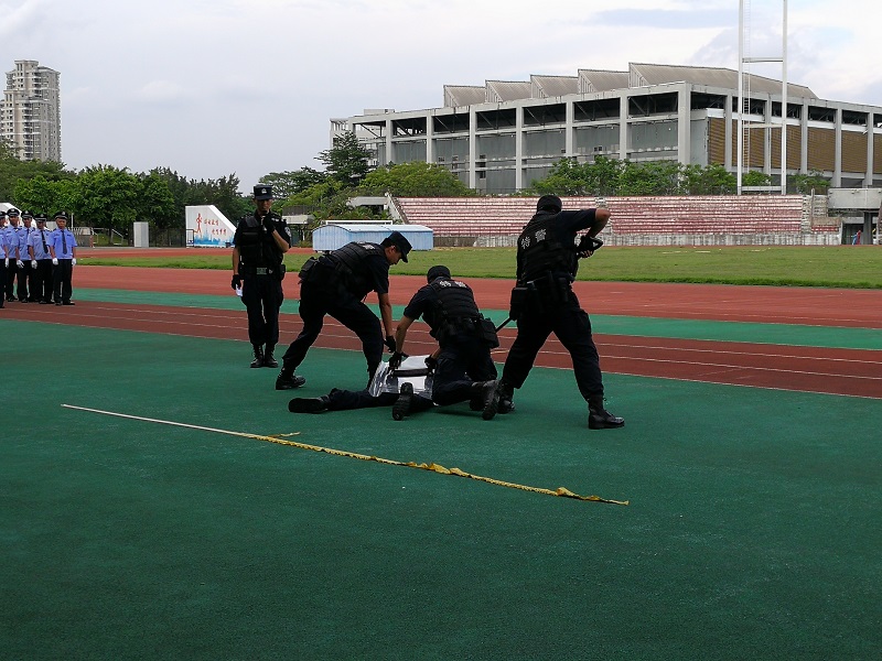 6月28日,我校开展2019年联合防暴演练暨校卫队岗位技能竞赛。活动由安全保卫处、校工会主办,学校党委委员、副校长杨敏林,松山湖公安分局副局长姚锦堂、巡警大队大队长卢松发、红棉派出所所长李容根,学校宣传部、安全保卫处、工会等职能部门相关领导参加了活动。