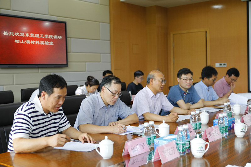我校副校长李忠红、杨敏林、李文芳,党委办公室、学校办公室、科技处、社科处、人力资源处、机械工程学院、材料科学与工程学院负责人,松山湖材料实验室相关负责人等参加了座谈。