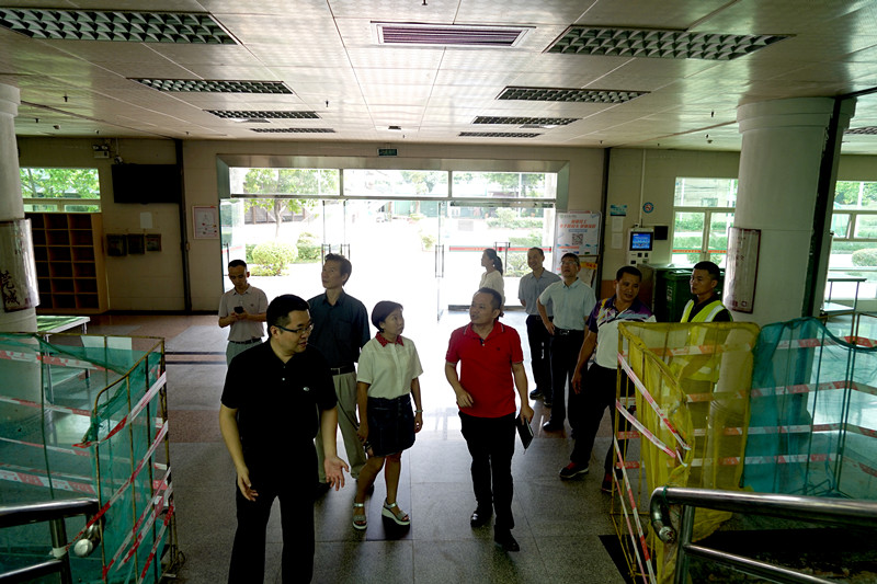 在莞城校区,莞城校区党工委书记、管委会常务副主任刘健带队开展了暑假前校园安全大检查。检查组重点对教学楼、机房、实验室、食堂、学生宿舍、施工工地等人流相对密集、较容易出现安全隐患的场所进行了拉网式的大排查,主要针对消防安全、水电安全、建筑体安全、危险化学品安全、设施设备安全、施工工地安全等方面进行全面的排查,对在检查中发现的建筑体墙体损坏、楼顶天花漏水、电线私拉私接、违反消防安全堵塞遮挡消防设施通道等情况勒令相关部门立即整改。