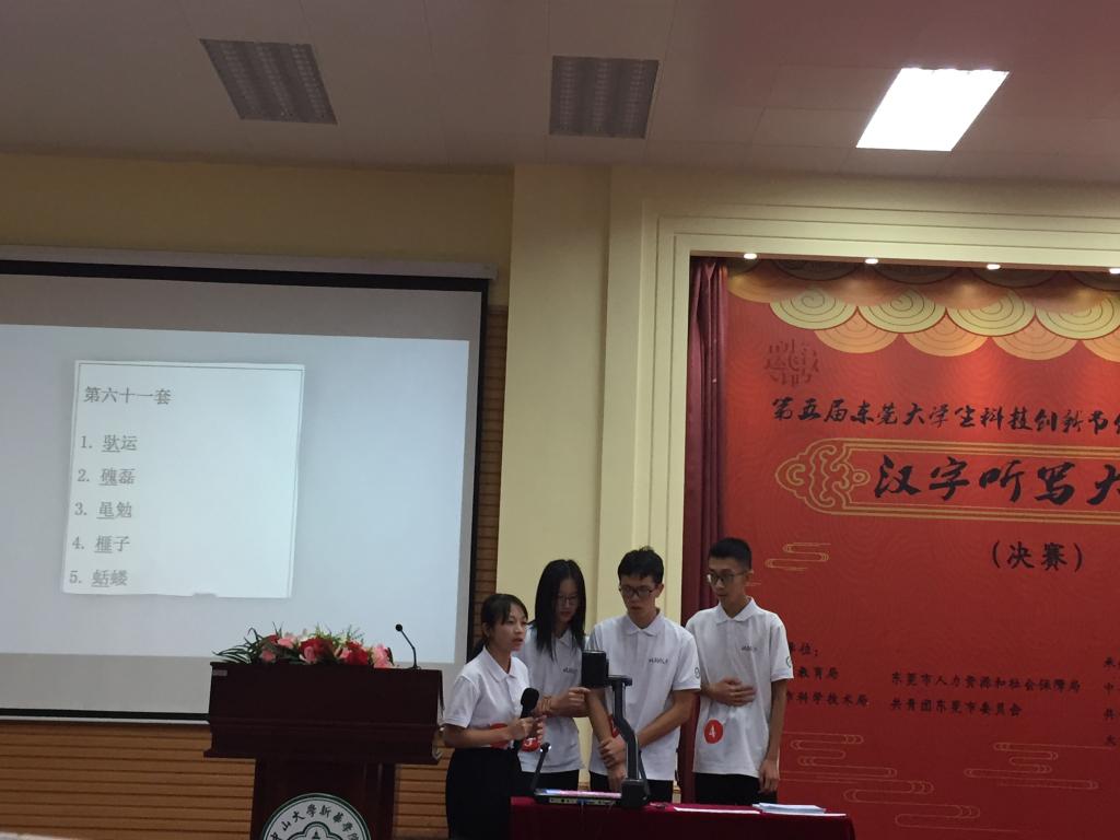 11月16日,第五届东莞市大学生汉字听写大赛在中山大学新华学院举行。在教育学院(师范学院)的精心策划和组织下,教育学院郑陶凌老师和诸小妮老师带领“莞工汉韵队”代表我校参加了比赛。