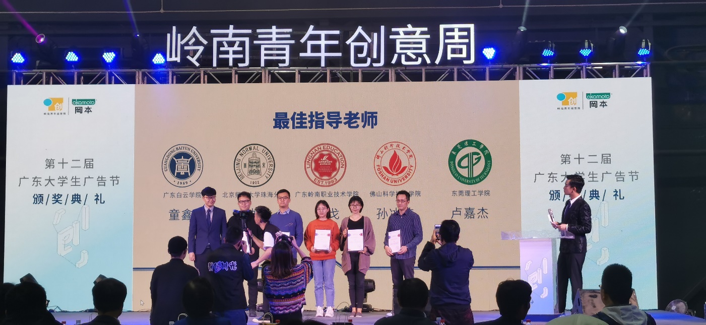 12月22日,第十二届广东大学生广告节暨岭南青年创意周在广州落下了帷幕。学院2017级广播电视学专业的姚凯泽、温智超、李佩文3位同学获银奖;梁家杰、吴敏华、何美娴、王子杰、汪毅鹏、戈亚琦6位同学获入围奖;文学与传媒学院传媒系教师卢嘉杰获最佳指导老师奖。