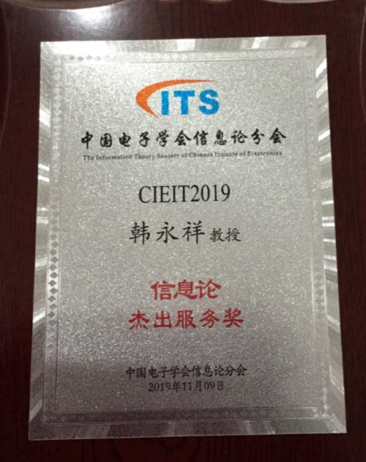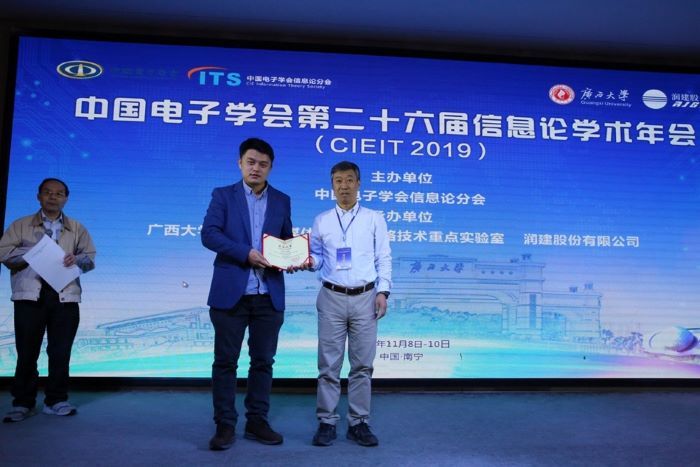 11月8日至11日,中国电子学会2019年全国信息论学术年会在广西南宁举行,会议对我国信息论领域作出突出贡献的学者以及评选出来的最佳论文进行了颁奖。其中,我校韩永祥教授荣获“信息论杰出服务奖”,以我校为第一作者单位的论文《Multi-Layer Transformed MDS Array Codes with Optimal Repair Access and Low Sub-Packetization》荣获最佳论文奖,论文作者是我校侯韩旭博士、韩永祥教授和香港中文大学Patrick P. C. Lee教授。