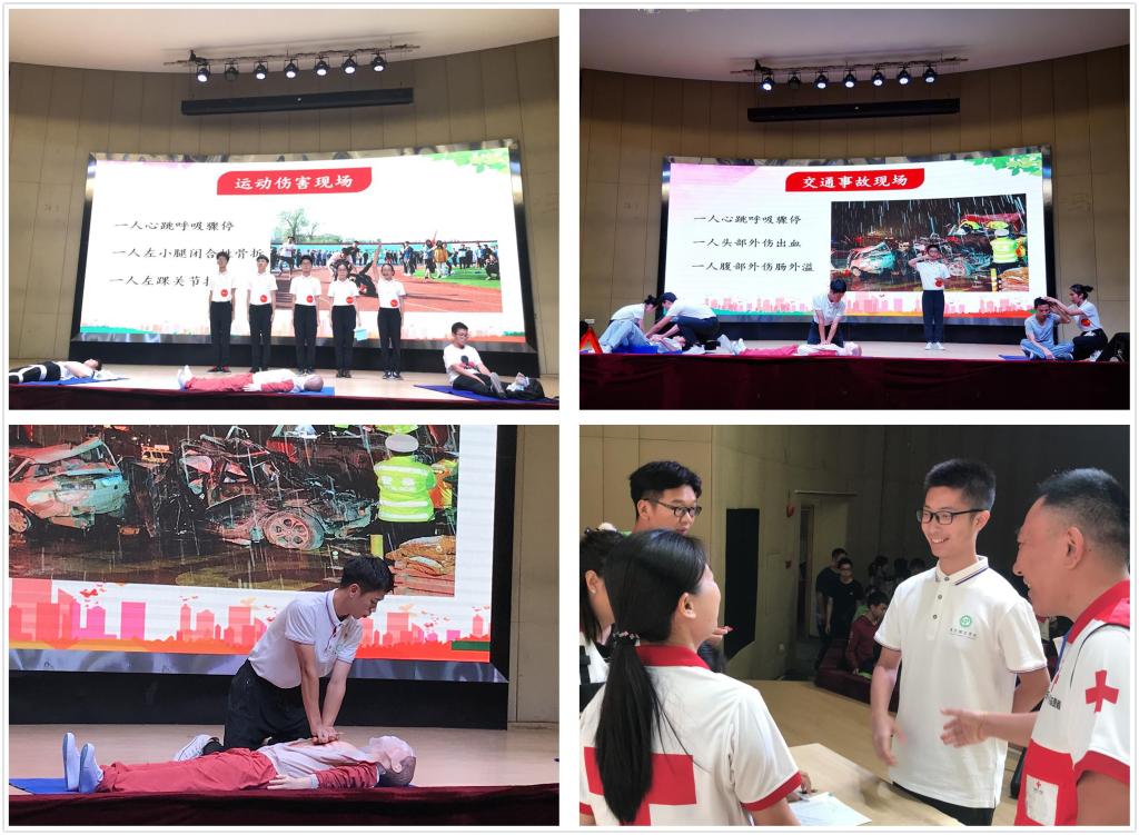 本次大赛的主题是“红十字‘救’在身边,比赛包含主题演讲和场景演练两个部分,其中演练包括了交通事故、地震灾害、火灾现场、踩踏事故、触电事故、运动伤害等模拟场景,考核参赛队员心肺复苏术、止血包扎、闭合性骨折固定和肠外溢处理等多种实操技能和应急救护理论知识。