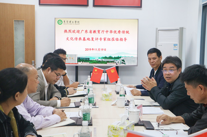 11月19日,广东省教育厅专家组对我校中华优秀传统文化(莞香文化)传承基地建设进行实地复评。学校党委副书记、校长马宏伟,党委副书记吕琦元以及党委宣传部(新闻中心)、党委学生工作部、学生处、后勤管理办公室、文学与传媒学院、教育学院(师范学院)及学生社区知行学院相关负责人、项目成员等接待专家组一行。