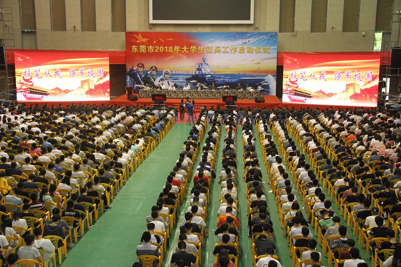 3月29日,东莞市2018年大学生征兵工作启动仪式在我校举行,副市长郭向阳、东莞军分区政委钟友国参加会议,我校党委书记成洪波,副书记吕琦元应邀出席大会。