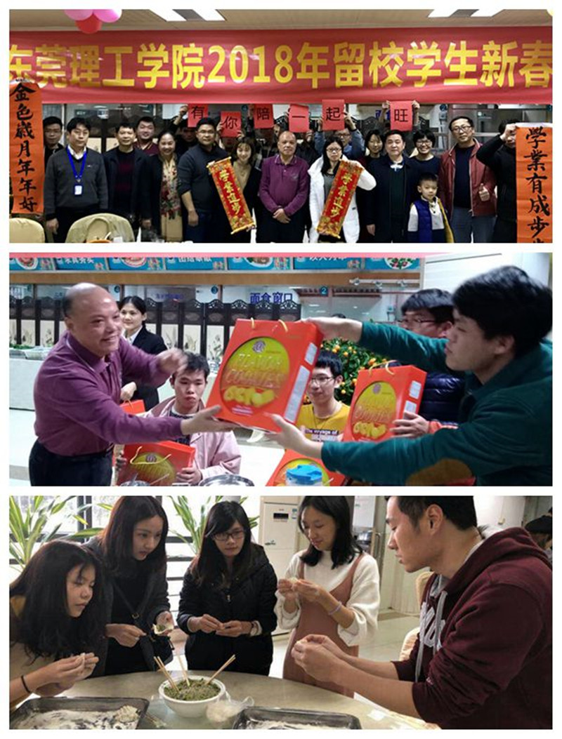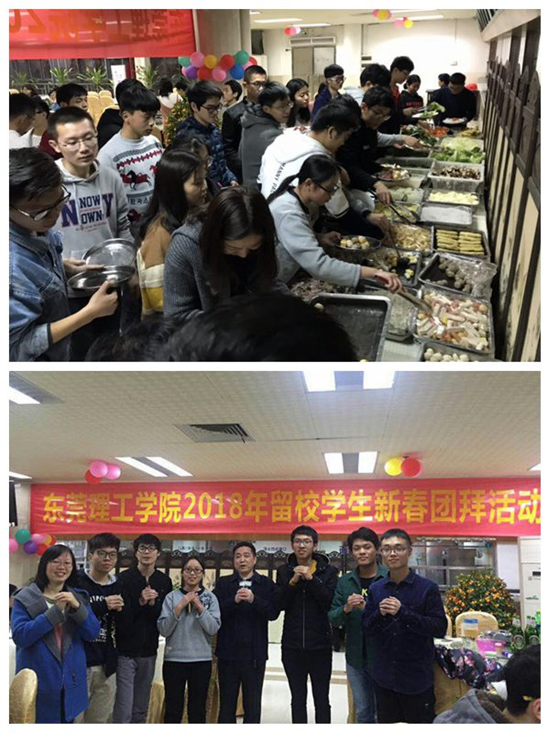 狗年新春佳节将至,莞工校园春意盎然。2月13日,在辞旧迎新的美好时刻,我校在松山湖校区第二食堂举行2018年留校学生新春团拜活动。校党委副书记吕琦元,学生工作部、后勤集团、学生社区知行学院和相关二级学院负责人与春节期间留校学生共100余人欢聚一堂,共度新春佳节。