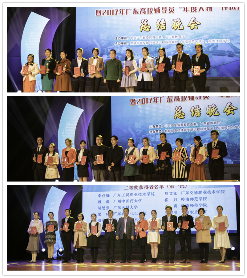 广东高校辅导员十佳“年度人物”在本次总结晚会上揭晓。来自广州大学的蔡强等荣获2017广东高校辅导员十佳“年度人物”。