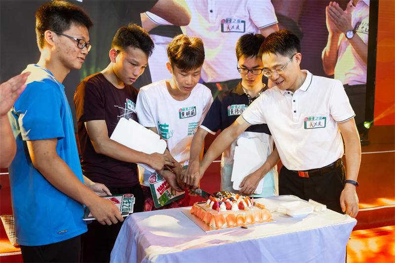 晚会还为新生们准备了系列惊喜环节,其中,全场为当天生日新生庆祝以及来自家人祝福的视频,还有美味的蛋糕、精美的礼物,让新生倍感惊喜与感动。寿星们收到礼物与全场的祝福,都表示是第一次在全校的祝福下过生日,感到十分意外与感动。
