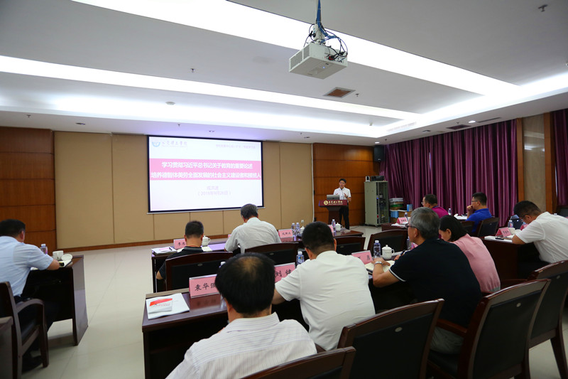 9月26日,学校党委中心组(扩大)学习贯彻习近平总书记关于教育的重要论述。党委书记成洪波阐述了习近平总书记关于教育的重要论述精神实质和全国教育大会精神,提出学习贯彻要求。