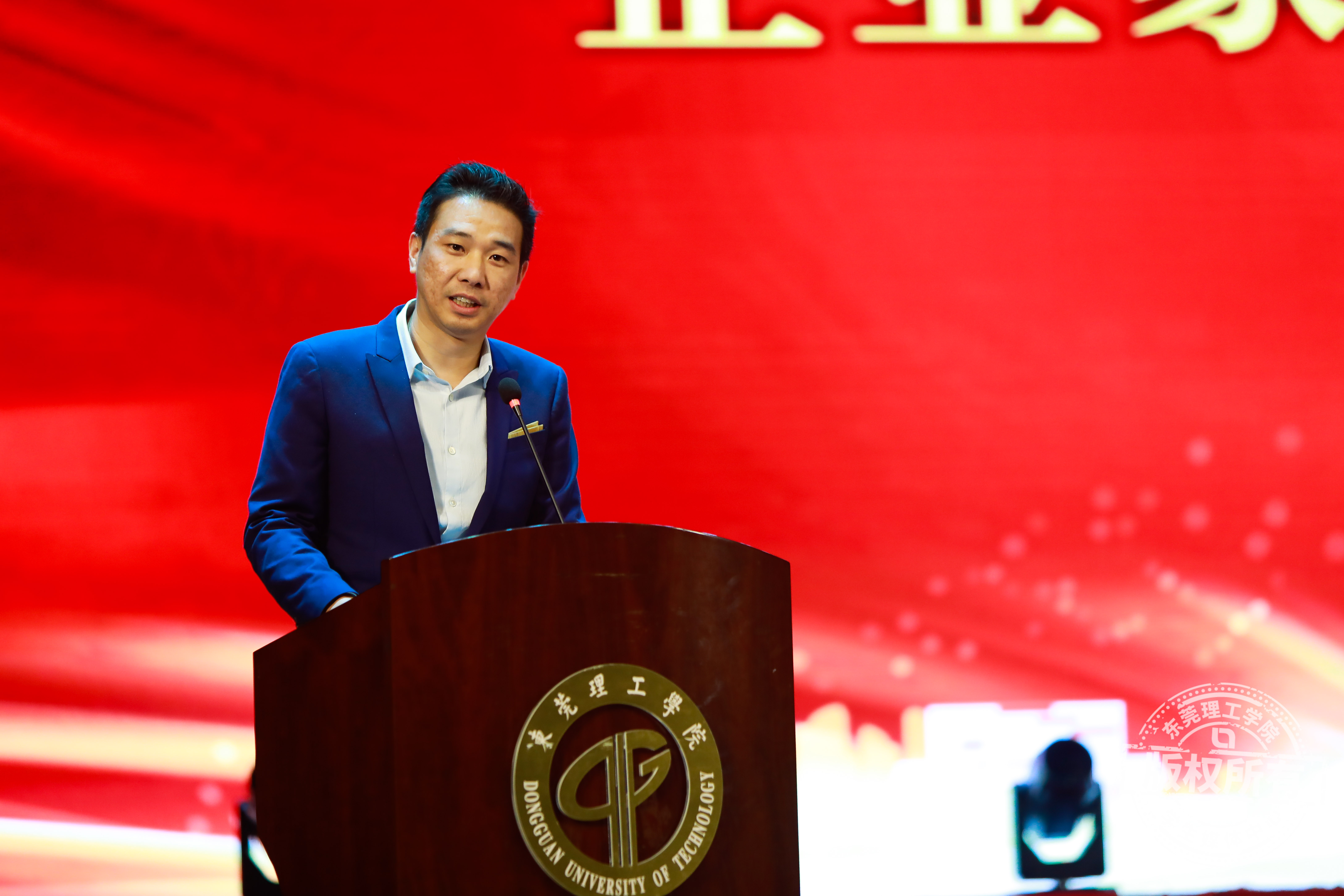 KK馆创始人兼CEO吴悦宁校友作为企业代表进行致辞,感谢母校对自己的培养,庆贺母校的建设速度和建设成就。他表示,设立kk奖学金,是以自己的方式报答母校,希望能够以此勉励莞工学子努力实现自我价值,将母校精神传承下去。
