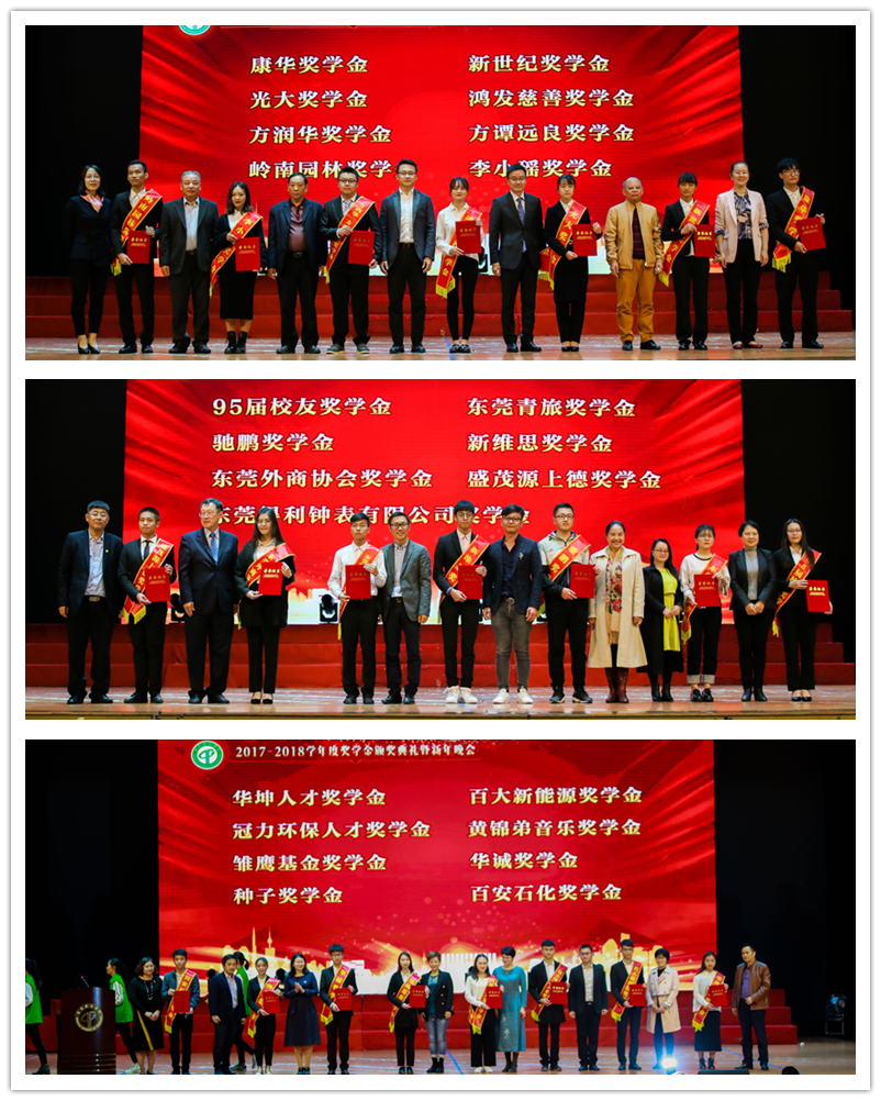 本次奖学金颁发由多方共同资助,其中包括企业、机构以及校友个人提供的资助,奖项分别有华坤人才奖学金、百大新能源奖学金、冠力环保人才奖学金、黄锦弟音乐奖学金、雏鹰基金奖学金、华诚奖学金、种子奖学金、百安石化奖学金、95届校友奖学金、东莞青旅奖学金、驰鹏奖学金、新维思奖学金、东莞得利钟表有限公司奖学金、东莞外商协会奖学金、盛茂源上德奖学金、康华奖学金、新世纪奖学金、光大奖学金、鸿发慈善奖学金、方润华奖学金、方谭远良奖学金、李小瑶奖学金、岭南股份奖学金等。