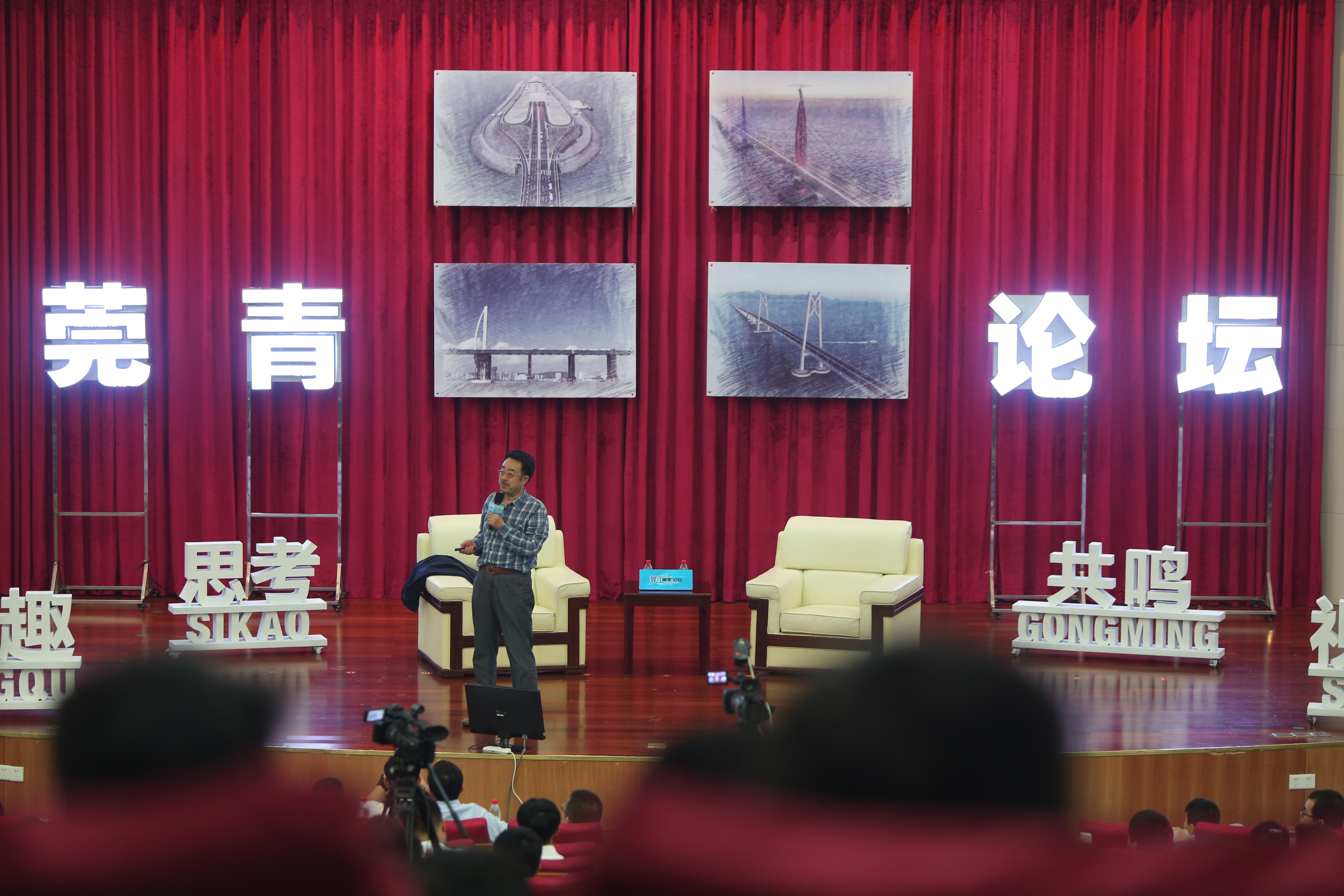 他不仅一直站着,而且特别抵近舞台的前沿,一如他一直在桥梁建造技术的前沿一样;又或许是,他总想着离同学们近一点再近一点,去回应500多双炽热的眼神。