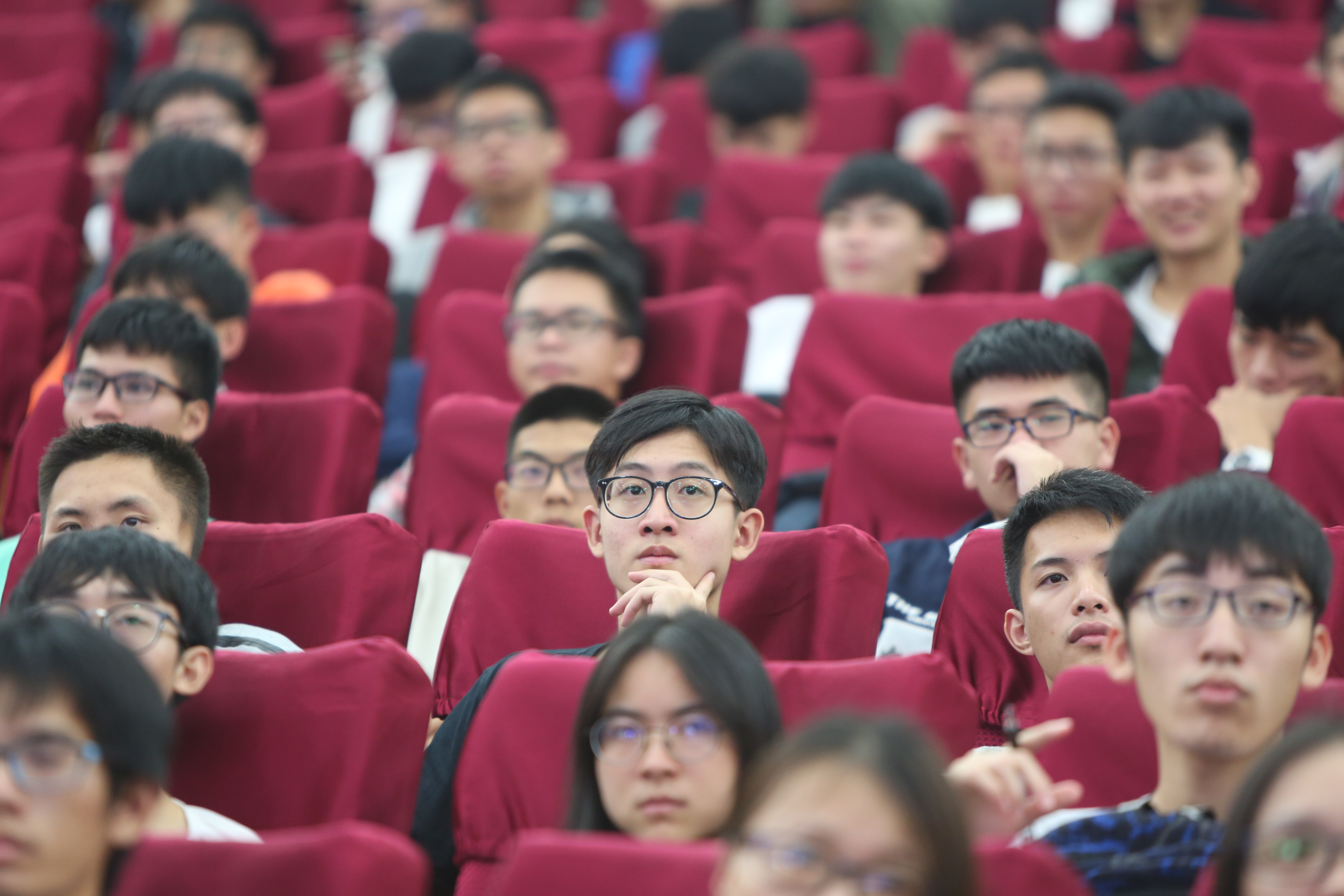 学校团委预料到,本场讲座得到知行学院的大力协办,将会受到同学们的欢迎,特别安排莞工青年论坛从学生中心“移师”到学术会议中心报告厅举行。《莞工青年论坛》办公室主任吕丁胜介绍,共计派发了514张票,现场上座率超100%。