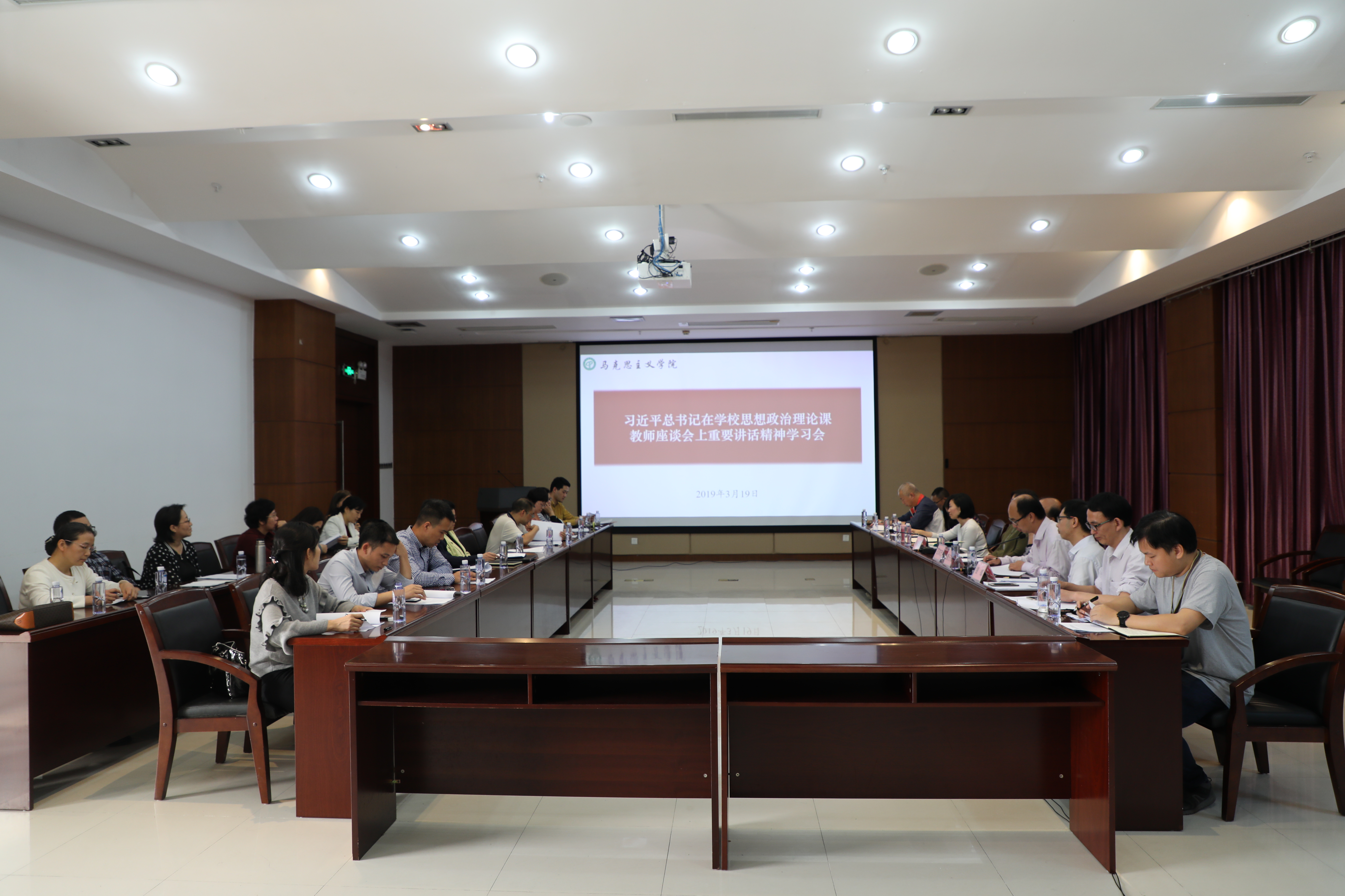 3月18日,中共中央总书记、国家主席、中央军委主席习近平在京主持召开学校思想政治理论课教师座谈会并发表重要讲话。19日,马克思主义学院组织召开全体教师座谈会,学习习近平总书记系列重要讲话精神。校党委副书记吕琦元、教师工作部部长何献青及马克思主义学院教职工参加会议。