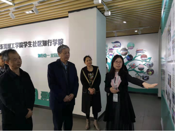 在学生社区知行学院,钟秉林观看了“一廊三室”、知行课程等建设成果,听取了党建引领、社区育人情况汇报。他认为,学校党委贯彻落实立德树人根本任务站位高、措施实,学生社区知行学院全员育人特色鲜明,既借鉴了书院制的做法,又从实际出发,比较好地实现了社区与教学机构人才培养职能的协同,特别是“服务管理社区化、价值引领生活化、素质养成场景化”的理念深入人心,把思想政治教育贯穿于日常生活中的各种创新做法值得充分肯定,具有推广价值。他评价,“这是一项很有价值的教学成果”,建议学校认真加以总结提炼。