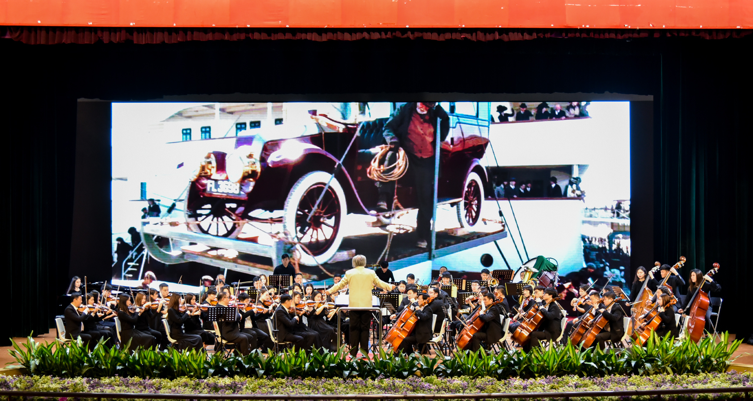优美的旋律配合着银屏中的电影片段,让观众们仿佛置身在穷画家杰克和贵族女露丝两人凄美的爱情中。在本曲演奏至高潮时刻,一位身着华丽红礼服的俄罗斯女歌唱家来到舞台中央,演唱着电影里经典曲目。声音与交响乐完美地交织在一起,让师生们沉醉不已。