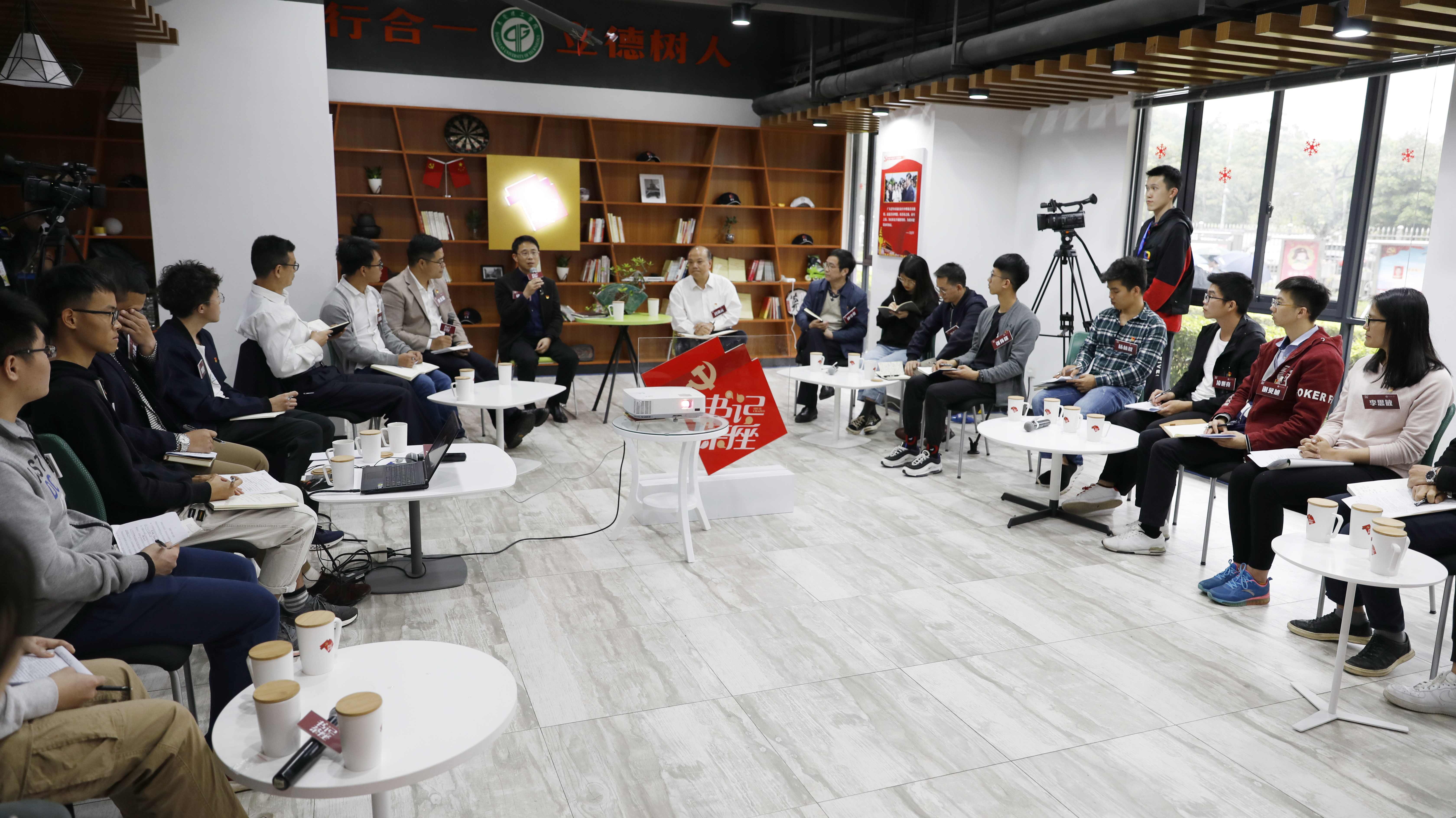 3月14日,由学校党委主办,组织部、宣传部、教工部、学工部、学生社区党工委等共同承办的2019年第一期书记茶座在松山湖校区学生社区莞华分院活动室举行,学校党委书记成洪波、副书记吕琦元走进学生社区,邀请了20位师生代表共同围绕习近平总书记视察广东重要讲话中提出的发展平衡性和协调性等相关问题进行深入探讨。