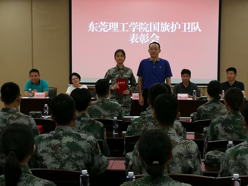 会议对国旗护卫队参加第三届广东省学校国旗护卫队交流展示活动进行了全面总结,对国旗护卫队以及在广东省高校优秀退役大学生士兵宣讲暨学校国旗护卫队工作中表现突出的林小红同学进行了表彰。