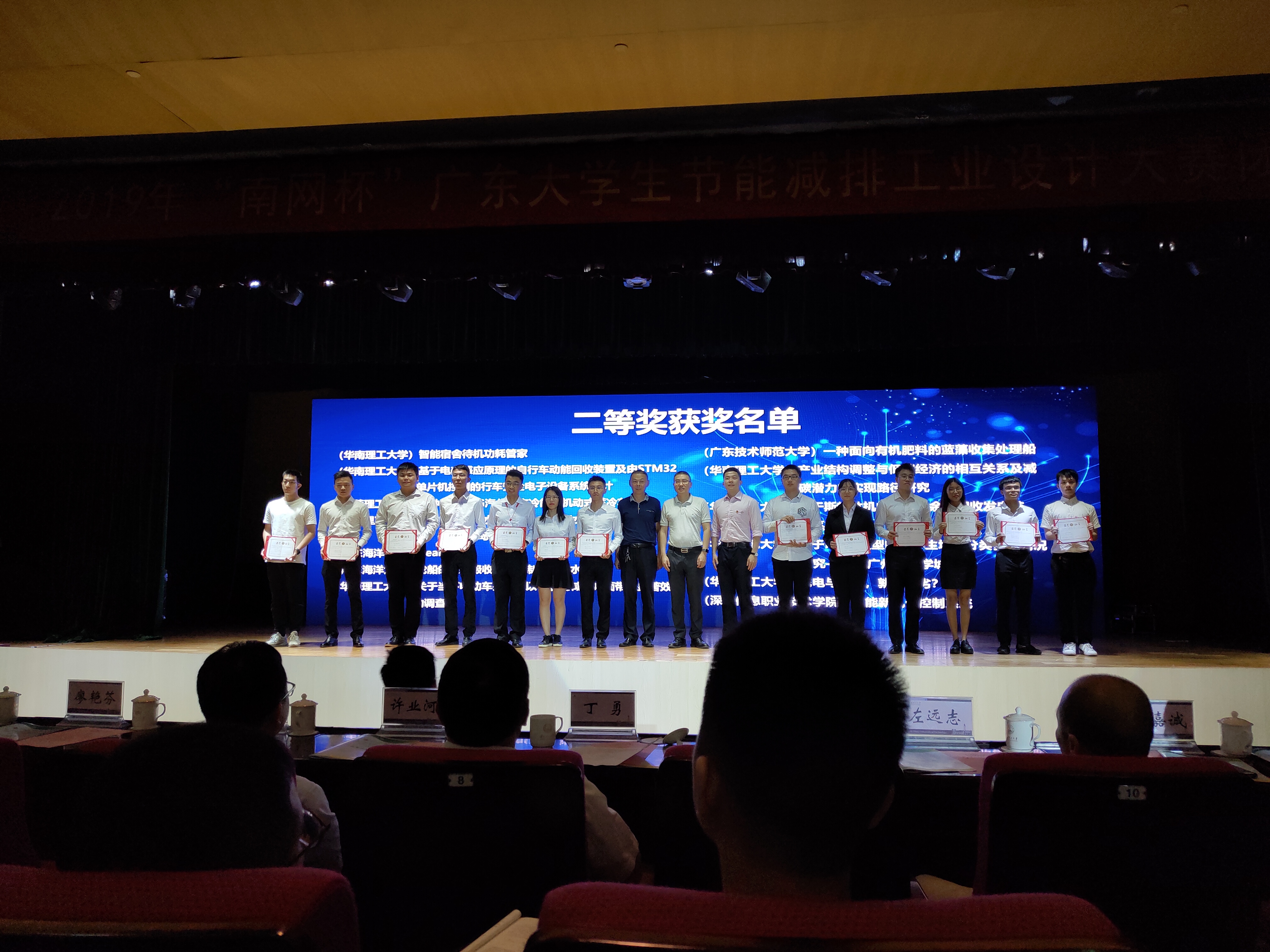由陈启强、彭成威张庭烽庄韩利林少涛黄梓佳蔡明生学生组成的团队经过层层角逐,成功取得广东省节能减排工业大赛二等奖。