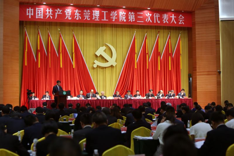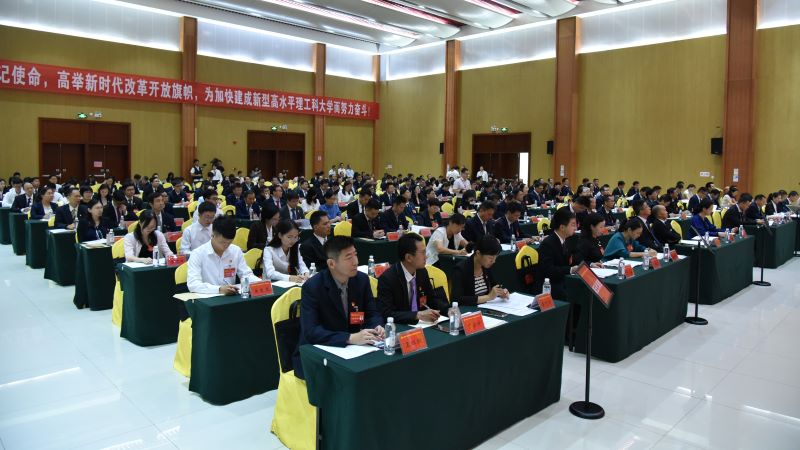 当天的会场洋溢着热烈、民主、团结、奋进的气氛。大会主席台正中悬挂由鲜艳的红旗簇拥着的金黄色的中国共产党党徽分外耀眼,“不忘初心、牢记使命,高举新时代改革开放旗帜,为加快建成新型高水平理工科大学而努力奋斗!”的标语悬挂在会场的后面。会场外一幅幅红色背景的巨大喷绘展板,牵引着大家的思绪穿越七年来学校的发展历程和成就。