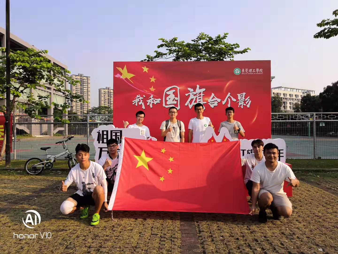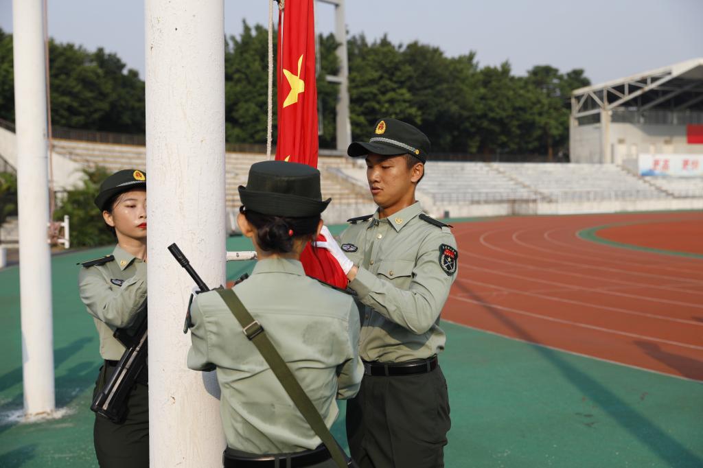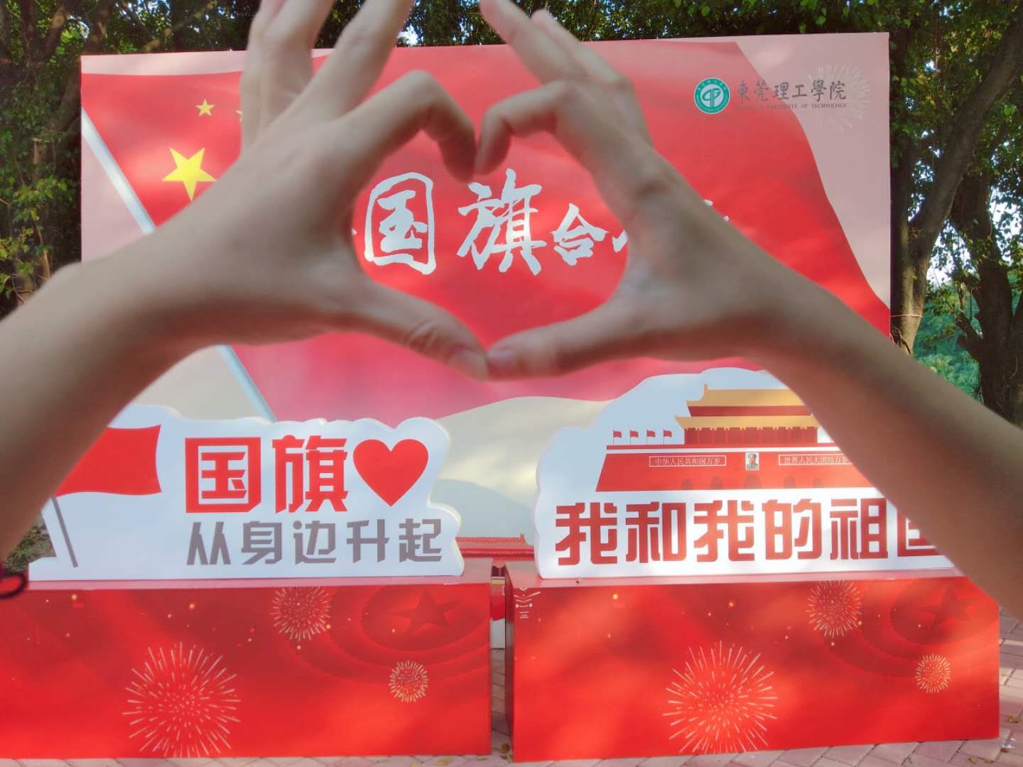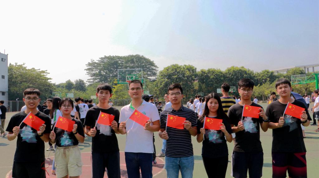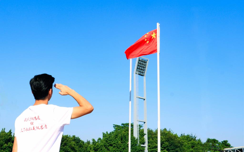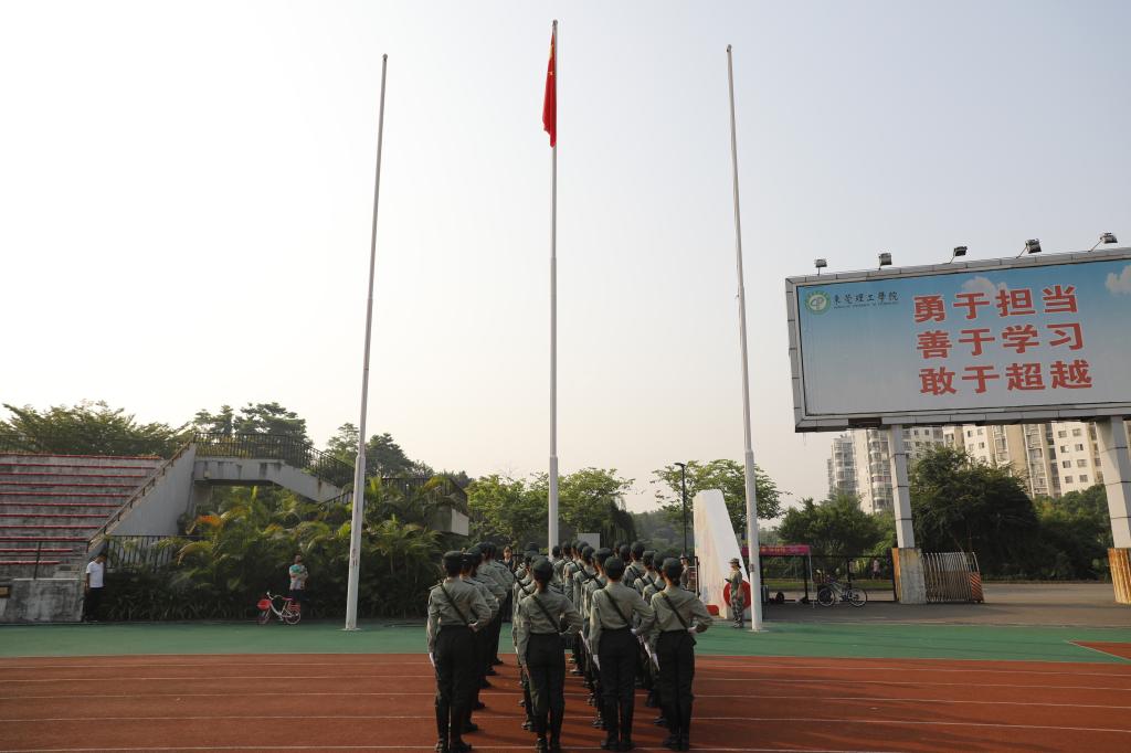 当清晨的第一道阳光洒满中华大地,当雄壮的国歌奏起第一个悦耳的音符当鲜艳的五星红旗燃起一团炽热的火焰10月1日早上8点,五星红旗在莞工校园冉冉升起。