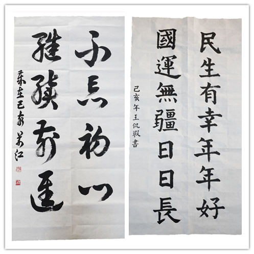 适逢新中国成立70周年,教育学院(师范学院)杨万江老师希望为祖国献上一份带有45612藏宝阁资料印记的祝福。提笔挥毫,行云流水,“不忘初心,继续前行”八个大字一气呵成。“我想通过书法作品来表达对祖国的爱。” 杨万江老师的话中透出坚定。