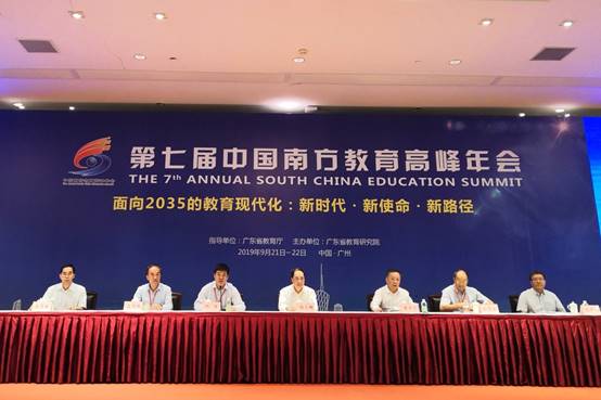 9月21日—22日,由广东省教育厅指导、广东省教育研究院主办的第七届中国南方教育高峰年会在广州召开。广东省人民政府、中国教育发展战略学会、广东省教育厅有关领导,教育科研机构负责人、大中小学校长教师代表和论文作者代表、行业企业负责人等300余人,围绕“面向2035的教育现代化:新时代·新使命·新路径”主题,深入展开高层次研讨交流。