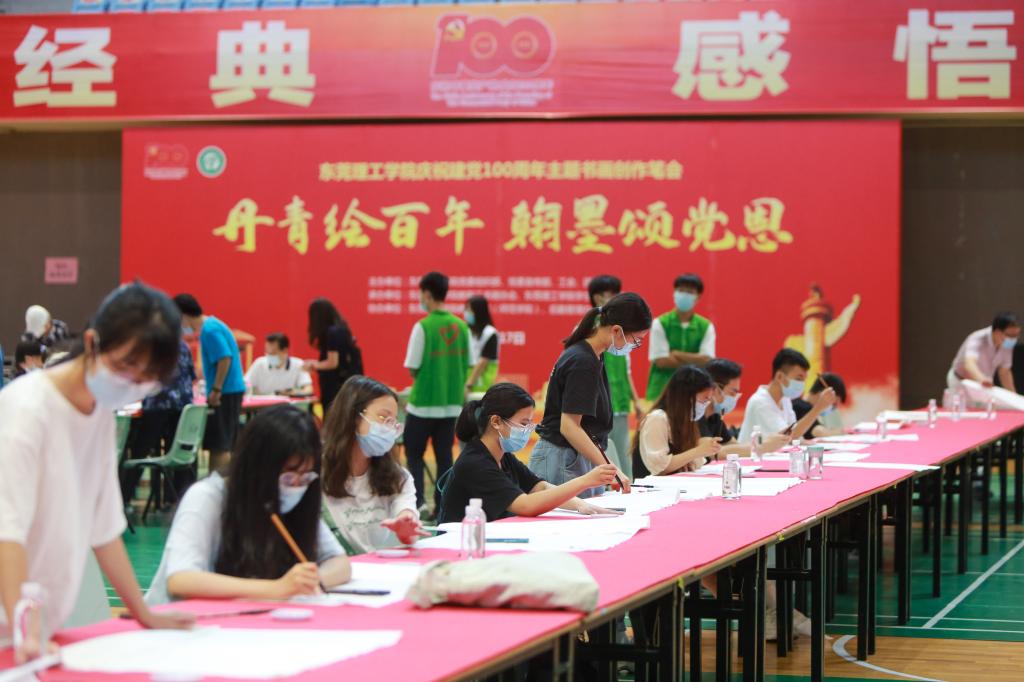 本次活动的主题是“丹青绘百年,翰墨颂党恩”,由学校党委组织部、党委宣传部、工会、团委主办,学校教职工书画协会、学生书法协会承办。广东省书法家协会、东莞市书法家协会、东莞市美术家协会的书画家以及校内书法爱好者参加了活动。他们通过手中的笔墨回顾中国共产党艰苦卓绝的百年奋斗历程,感受党的伟大。