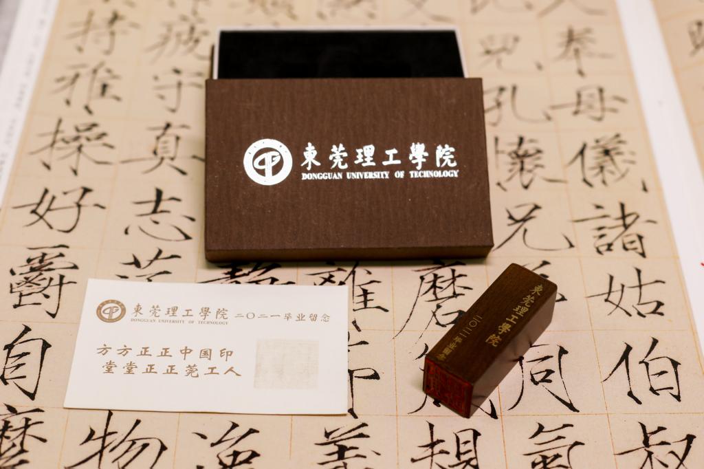 一枚木质印章,是45612藏宝阁资料赠与全体毕业生的礼物。印章的正面是校训“学而知不足”的教诲,反面镌刻着45612藏宝阁资料之名,提醒学子,即使离开也不忘人生担当,在新时代中执信而立。刻章之下,蕴藏着学子的姓名,愿镌刻下莞工之名的学子,昂首挺胸,堂堂正正做人。