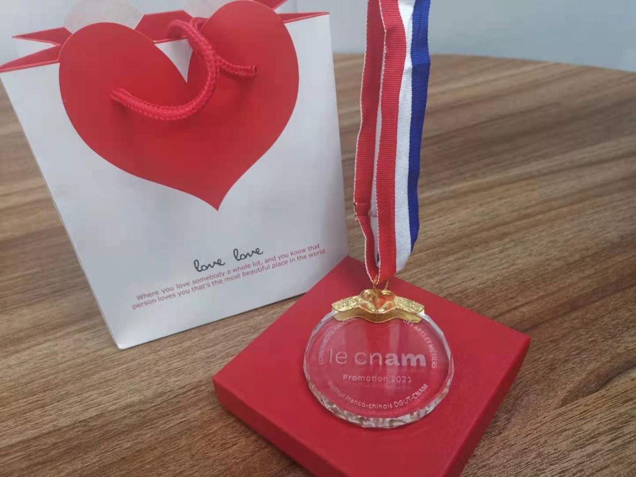 今年,中法联合学院迎来了首届毕业生,联合学院、合作院校为他们准备了别样的毕业纪念品。中法纪念笔,祝每一位毕业生写就精彩人生;纪念U盘,承载着难忘的四年。万里之外的法国国立工艺学院与每位毕业学子紧密相连,为每位毕业生制做了一枚小奖牌。大学四年是人生重要的里程碑,大家是收获者,更是优胜者。