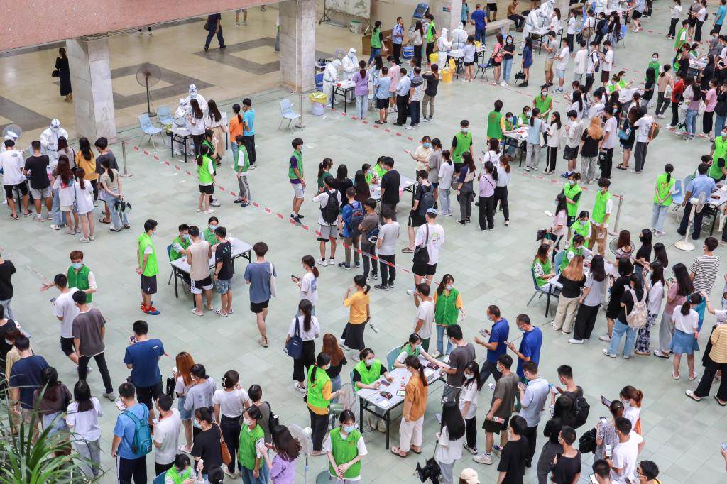 2020级文学与传媒学院的曾同学在做完核酸检测采样之后感慨颇深。她表示,学校的应急处理方案也是非常迅速和有效的。刚开始因为通知紧急,核酸检测采样现场出现混乱的情况,人员安排没及时到位导致整体的推进速度比较慢。但在学校的协调后,很快问题就得到了有效的处理。“我下午去做核酸检测采样的时候,排队速度变快了,医护人员也很有耐心,让我紧张的心理渐渐地得到了缓解。”